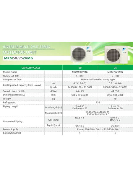 5) 12k + 18k BTU System 2 (5 ticks) MKM75ZVMG / CTKM35ZVMG & CTKM50ZVMG