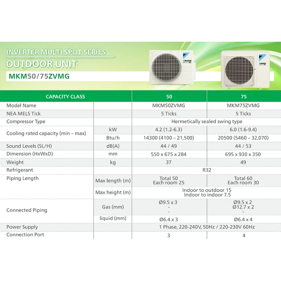 7) 9K + 12K + 18K BTU System 3 (5 ticks) MKM85ZVMG/CTKM25ZVMG & CTKM35ZVMG & CTKM50ZVMG