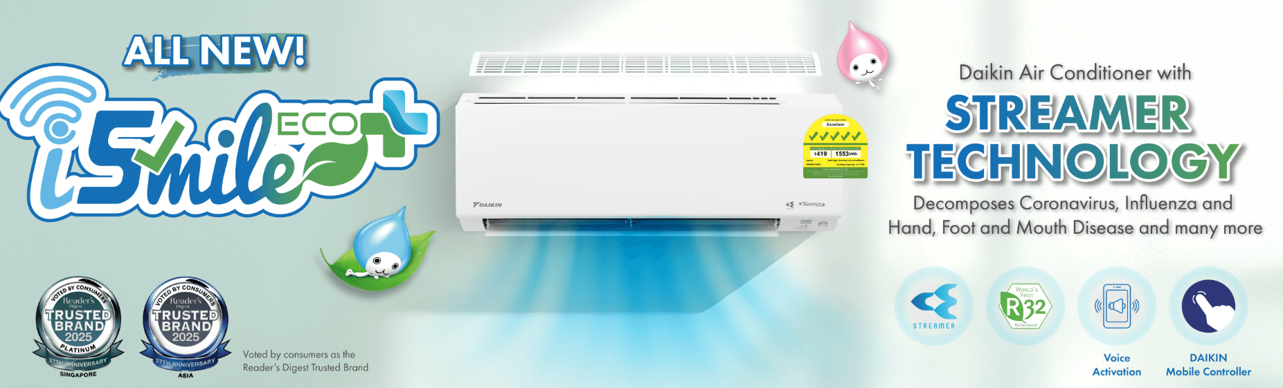 DAIKIN SYSTEM 3 ISMILE ECO+ WITH STREAMER TECHNOLOGY (INCLUDED FREE UPGRADED MATERIALS)