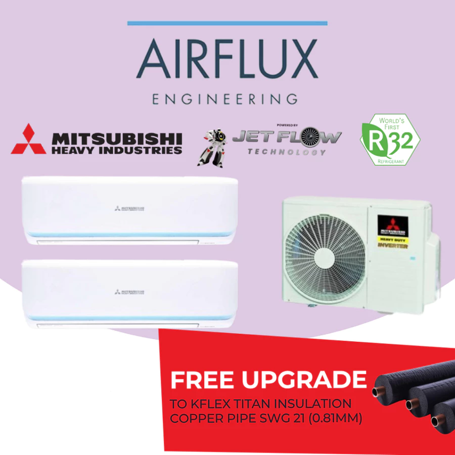 MITSUBISHI HEAVY INDUSTRIAL SYSTEM 2 ROCKET SERIES WITH BUILT-IN-WIFI (WITH INCLUDED INSTALLATION, FREE UPGRADED MATERIAL, FREE DISMANTLE EXISTING AIRCON)